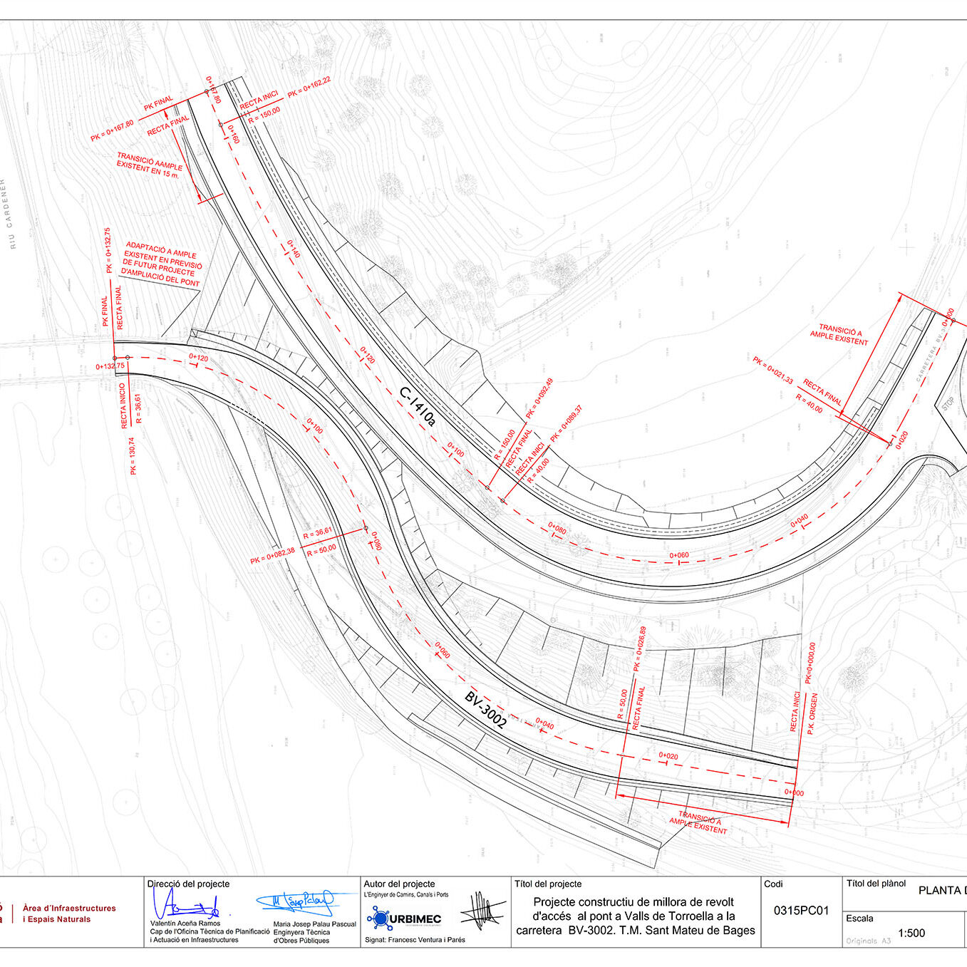 Projecte executiu per a una nova vorera entre el PK 13+650 i 13+750 i implantació semàfor al PK 13+375 de la ctra. BV-5001 (Martorelles)